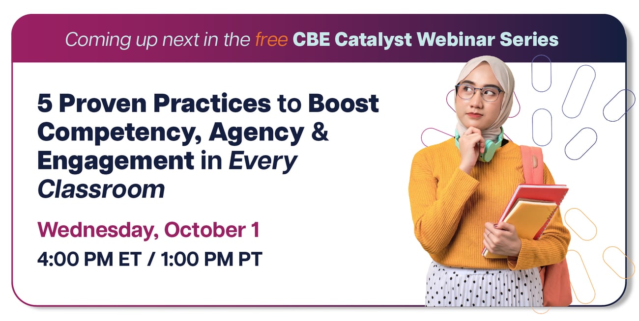 This session is part of the CBE Catalyst Webinar Series—free webinars designed to spotlight the most powerful levers for competency-based transformation. Each includes concrete strategies you can use right away, live Q&A with our coaches, and recordings sent to all registrants.