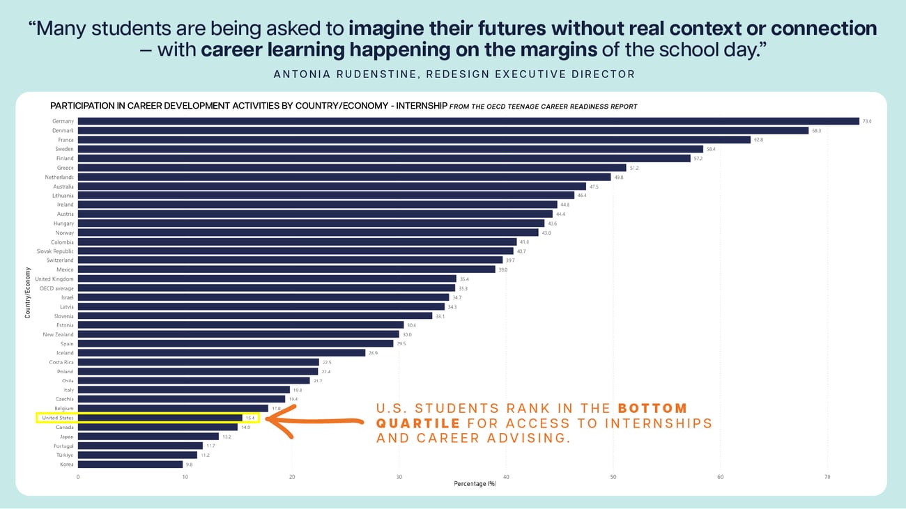 A new OECD dashboard brings fresh visibility to a troubling trend: U.S. students rank in the bottom quartile for access to internships and career advising. That’s not just a stat—it’s a signal.